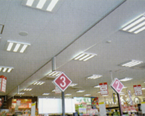 ガラスでできていた防煙タレ壁は、地震で落下し、被害が拡大しました。
